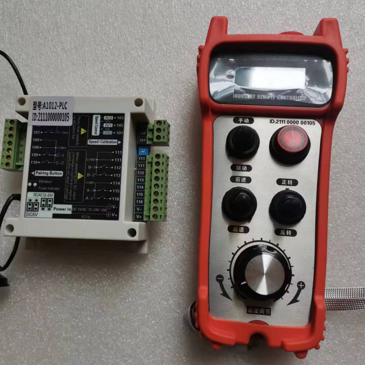 A2012/A2012-PLC遙控器手持端采用旋轉(zhuǎn)編碼器調(diào)節(jié)速度,A1012/A1012-PLC 遙控器手持端采用碳膜電位器調(diào)節(jié)速度。外觀和接收器輸出,以及其他功能相同。 |