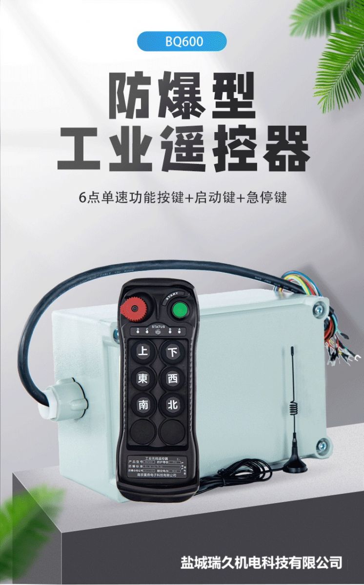 LCC高品質(zhì)遙控器,BQ系列防爆遙控器分為全防爆和半防爆兩種模式全防爆就是發(fā)射器防爆,接收機(jī)配備防爆箱。 半防爆就是發(fā)射器防爆,接收機(jī)由客戶自行安裝至自備配備防爆箱內(nèi)。 BQ系列防爆遙控器包含以下4種型號: BQ600六鍵防爆遙控器 、BQ800八鍵防爆遙控器、BQ1000十鍵防爆遙控器、BQ1200十二鍵防爆遙控器。