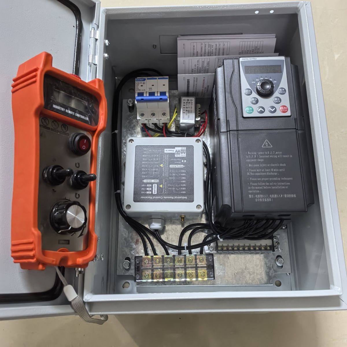 鹽城瑞久機電科技有限公司可為您定制工業(yè)無線遙控控制箱,通過遙控器在數百米甚至數千米外實現遠距離無線控制控制箱內的元器件動作,不但能夠實現開關量動作,替代控制箱面板的按鈕開關、選擇開關、檔位開關還可以替代變頻器面板按鈕、旋鈕,實現模擬量的遠距離控制,從而控制變頻電機的轉速、比例閥開度、焊接電流的大小、PWM脈寬等。通過遙控器面板的顯示屏、液晶屏、觸摸屏等還可以顯示被控對象的工作參數、工作狀態(tài)。接收機還可以接入PLC、中控系統(tǒng)、傳感器等設備,將現場控制信號、參數無線傳送至發(fā)射器,通過發(fā)射器面板的指示燈、蜂鳴器、液晶屏等傳遞給操作者。并實現各種順序、條件、運算等復雜的邏輯控制。